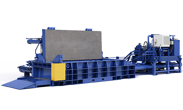PAL型スクラッププレスは、地上設置型で設備導入コストを大幅に抑えられます。横蓋式の幅広い投入ボックスはそのままに、新たに幅寄せシリンダを搭載。廃車や大型スクラップも強力に圧縮し、安定した成型品により運送効率も向上します。